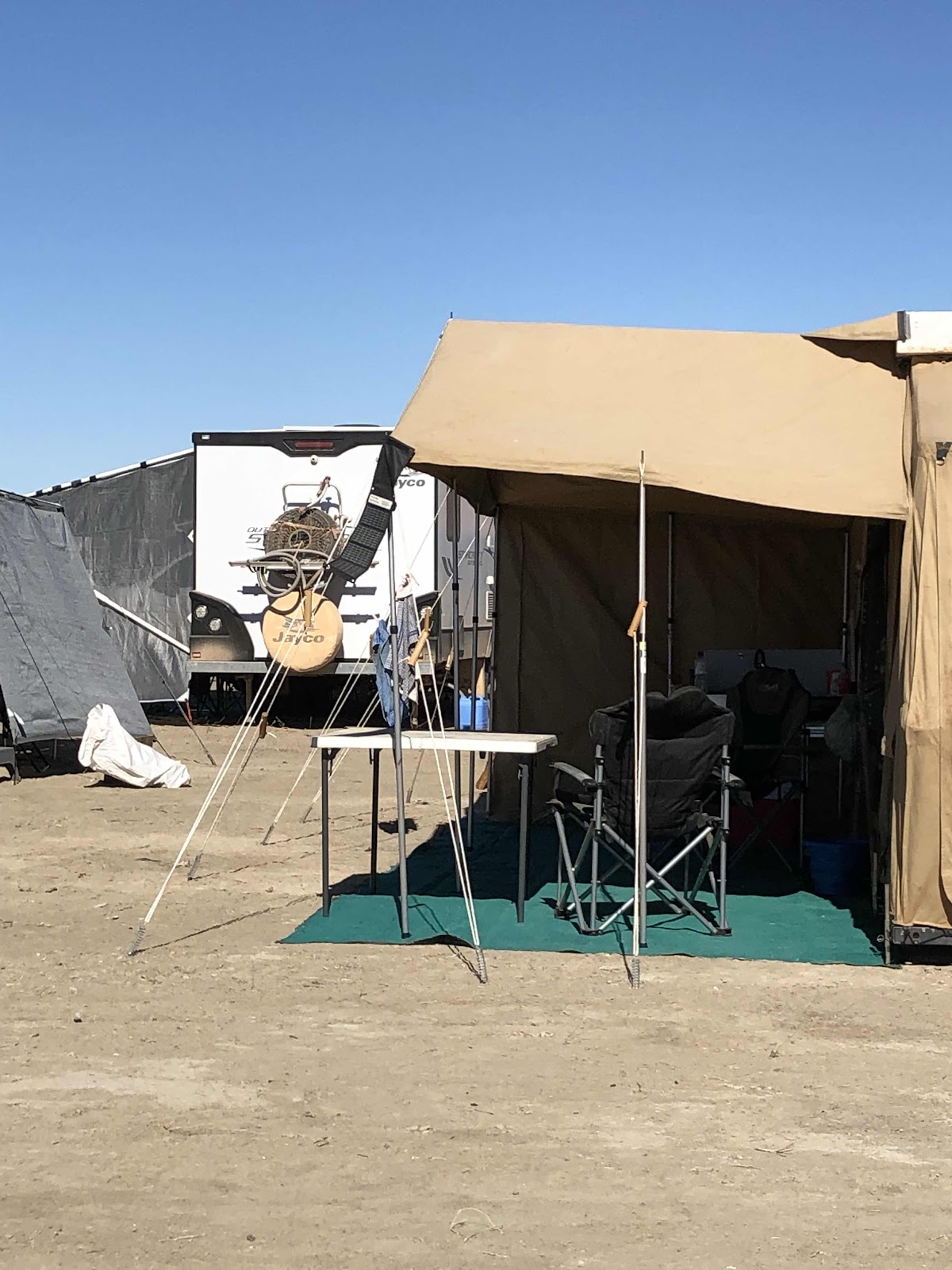 Bacon and eggs on Phil’s grill over the fire pit. Then a bit of phaffing with solar panels. I set up inverter to charge the power pack which in turn charged the torch and small power pack last night.