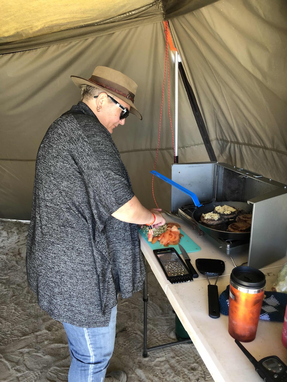 Back to camp and making some lunch. The Dundek’s actually cooked - burgers.